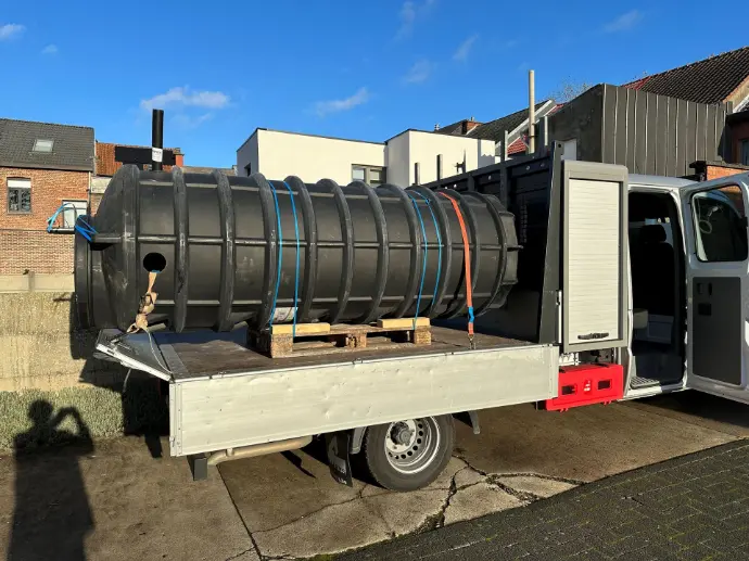 - Pompcontainer silo-reiniging in Le Havre (Frankrijk), volledig met PEhD break-tank en Hydro-Unit ® met RVS verticale "in-line" centrifugaalpomp.
