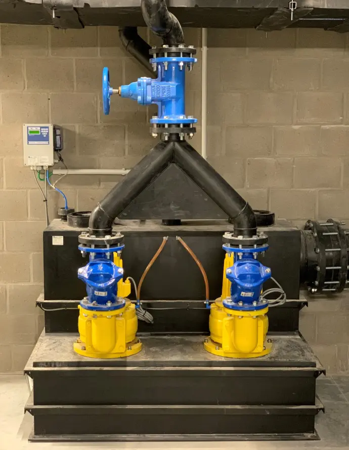 Dompelpompen voor kelder- en werftoepassingen, rioolwaterdompelpompen (bv. voor afvoer van DWA, vertraagde lozing van regenwater, drukrioleringssystemen, …), prefab droog opgestelde opvoerstations voor afvoer van afvalwater uit kelders, prefab pompputten voor ondergrondse installatie, …